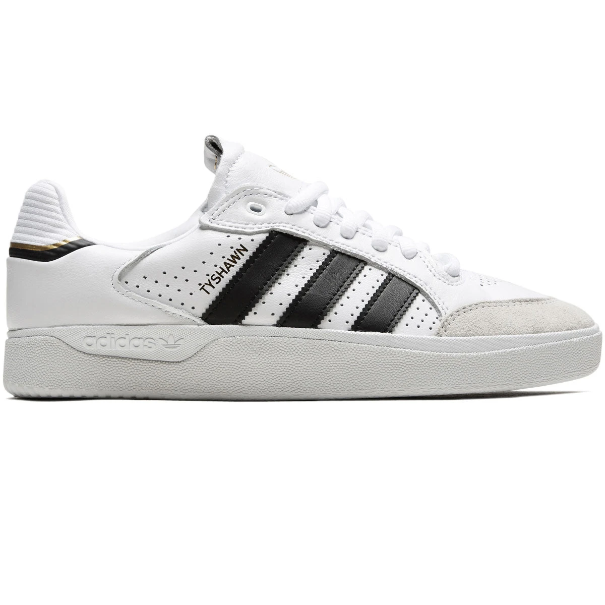 The legacy of Tyshawn Jones, the 21st century undisputed King of New York, continues to grow with the Low version of his unstoppable Adidas signature skate shoe. The Tyshawn Low Shoes maintain their iconic lines, adding a premium leather upper and suede detailing. Adituff toe reinforcement and cupsole support provide comfort and control to the court-inspired design.